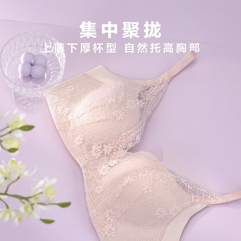 爱慕内衣女无钢圈专利隐孔杯蕾丝性感舒适透气文胸韵律AM177721S荷粉色B85价格:249.00元!