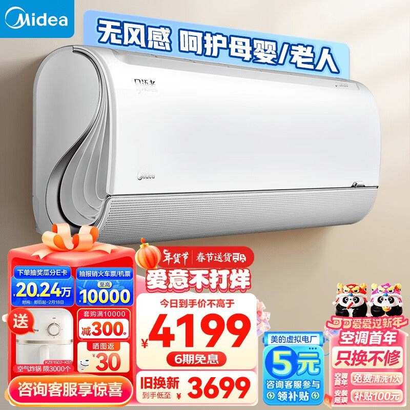 美的(Midea) 1.5匹升级款极地风语者新一级智能家电变频冷暖 壁挂式空调KFR-35GW/BDN8Y-FA200(1)A价格:4199.00元!