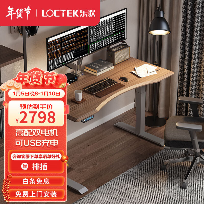 乐歌电动升降桌电脑桌学习桌写字桌凹型黑胡桃木色桌子E5-N/1.4m价格:3098.00元!