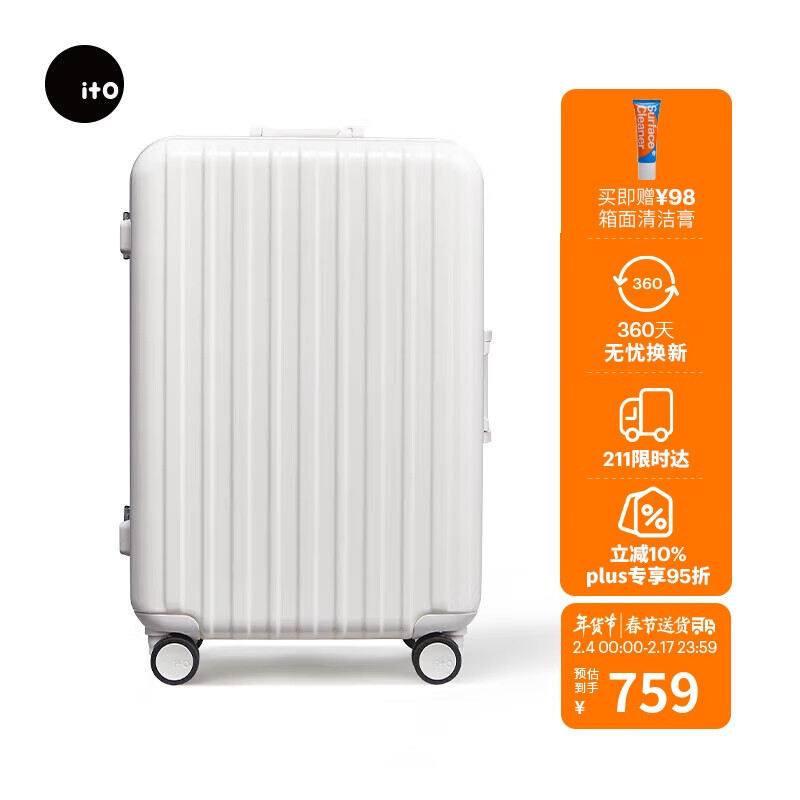 ITO行李箱CLASSIC 15拉杆箱男女旅行登机箱万向轮大容量白色20英寸价格:888.00元!