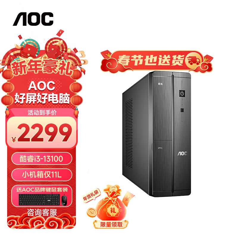 AOC 荣光910 高性能商用办公台式机电脑主机(13代i3-13100 16G 512G SSD WIFI商务键鼠 三年上门)价格:2299.00元!