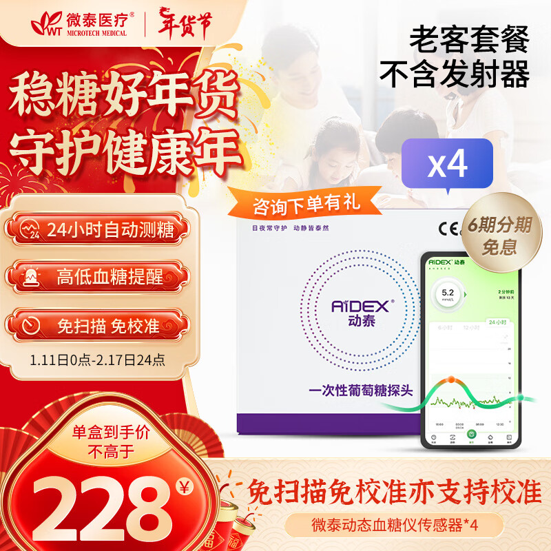 微泰动泰 动态血糖测试仪家用14天连续测血糖仪器免扫描免校准传感器探头(老客2个月测糖包)价格:1720.00元!