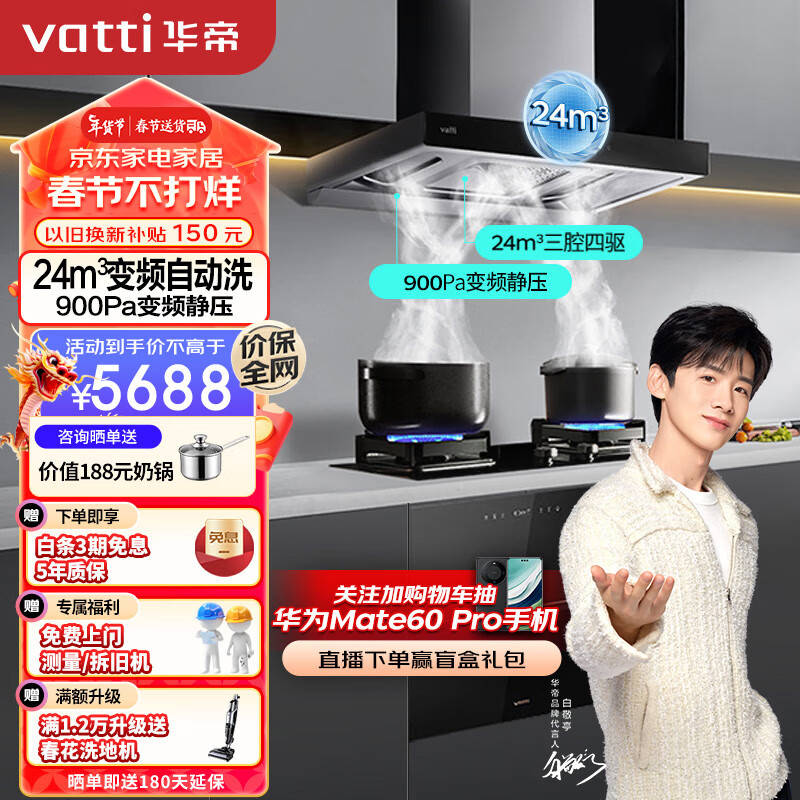 华帝(VATTI)抽油烟机创世S6抽油烟机燃气灶具消毒柜家用厨房三件套 i11206+72B+13040(天然气)价格:5688.00元!
