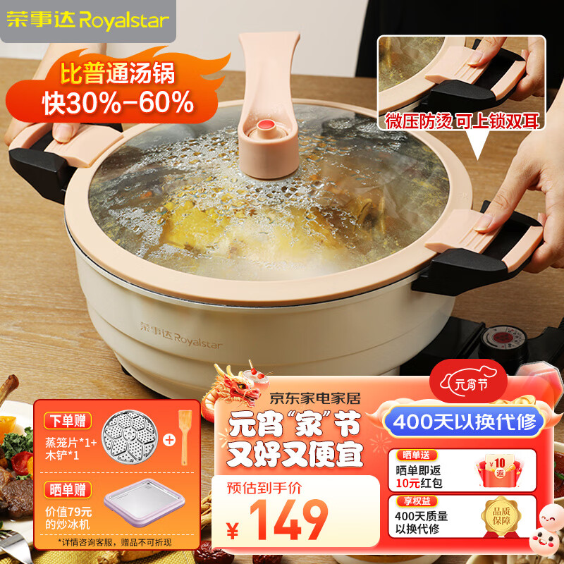 荣事达(Royalstar)电火锅6L微压火锅 电炒锅 不粘涂层家用电热锅 一体锅 多功能电子微压锅不粘煲汤锅ZG16B16 配蒸片价格:149.00元!