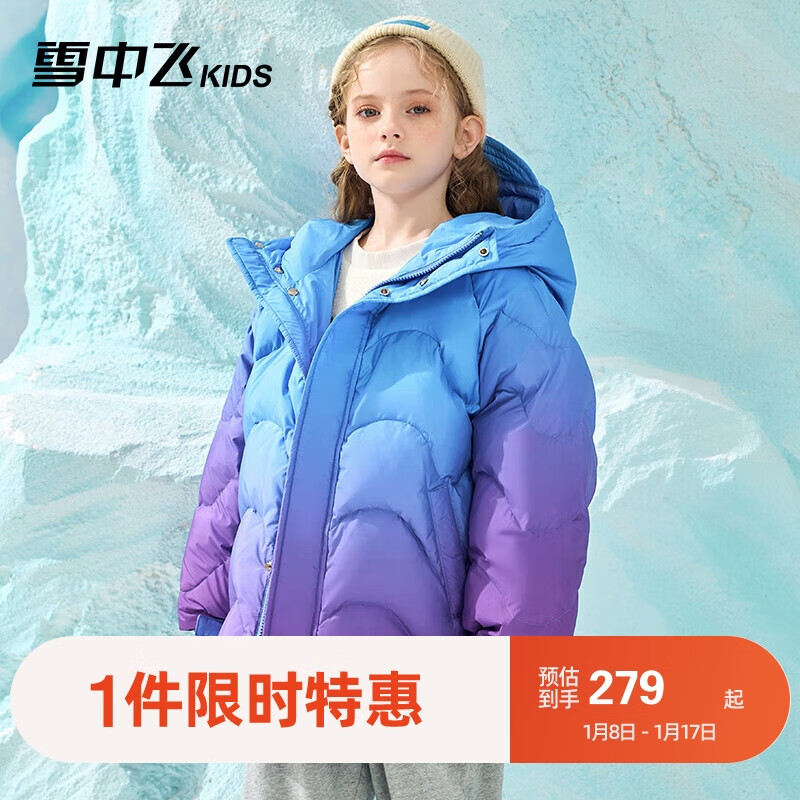 雪中飞童装儿童羽绒服男女童渐变色撞色中大童拼接羽绒服斑斓紫150cm价格:679.00元!