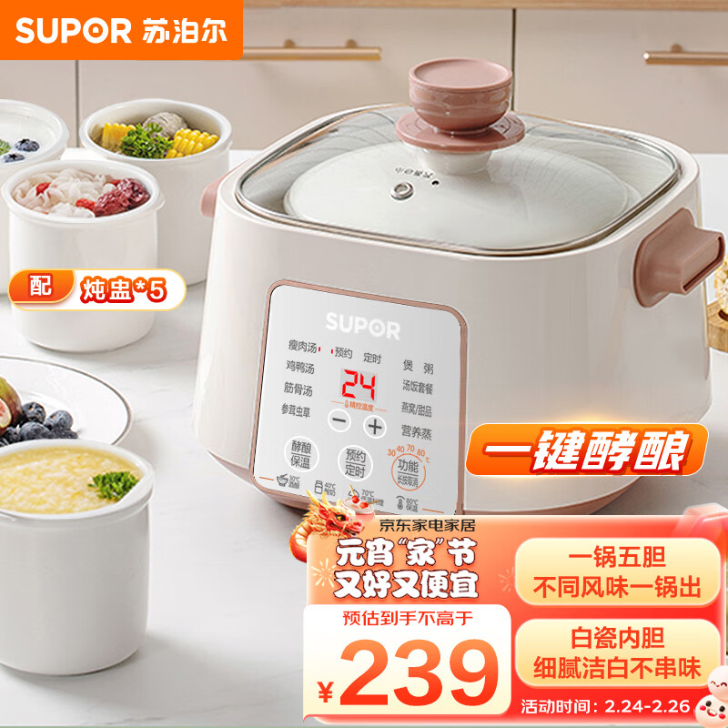 苏泊尔(SUPOR)电炖锅 电炖盅 煲汤锅炖汤锅 隔水炖锅 燕窝炖盅 煮粥神器 电汤锅 陶瓷熬粥专用锅 DZ25YC828 2.5L价格:239.00元!