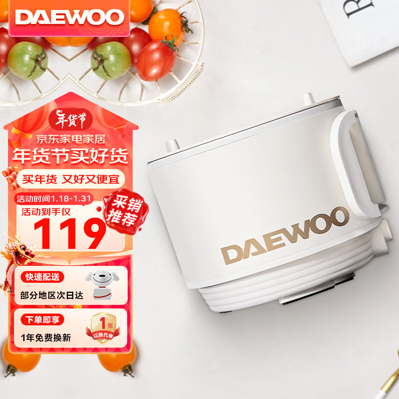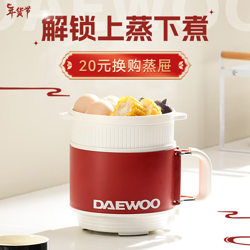 大宇(DAEWOO)电煮锅 小电锅宿舍小煮锅学生泡面锅多功能电热锅蒸煮一体迷你电火锅单人小圆锅年货送礼S26白色价格:99.00元!