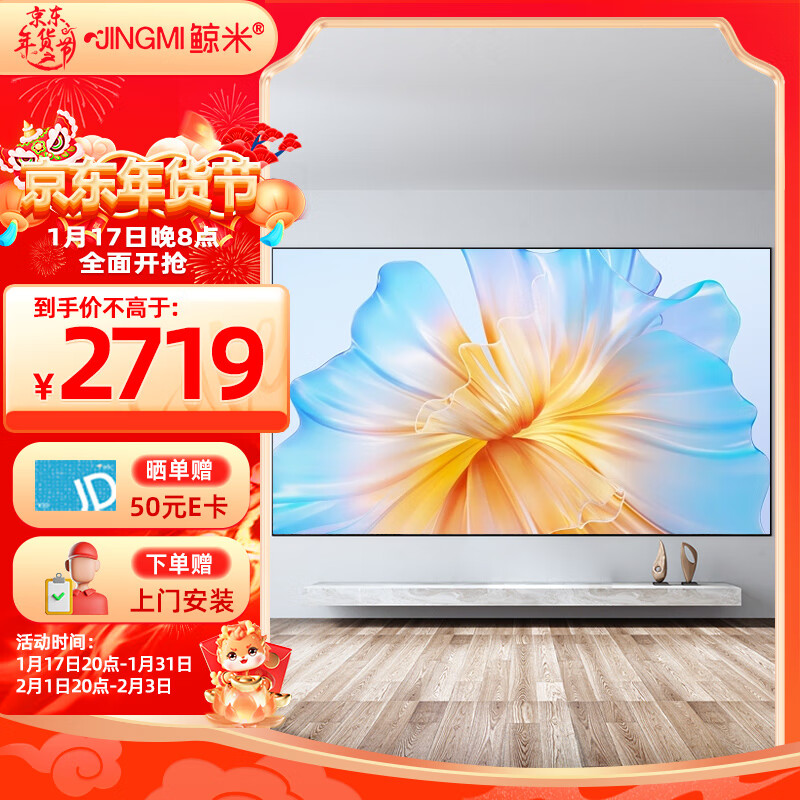 鲸米(JINGMI)100英寸16:9菲涅尔抗光硬屏F4中长焦投影仪幕布超窄边画框高清4K家用光学抗光投影屏幕价格:3199.00元!