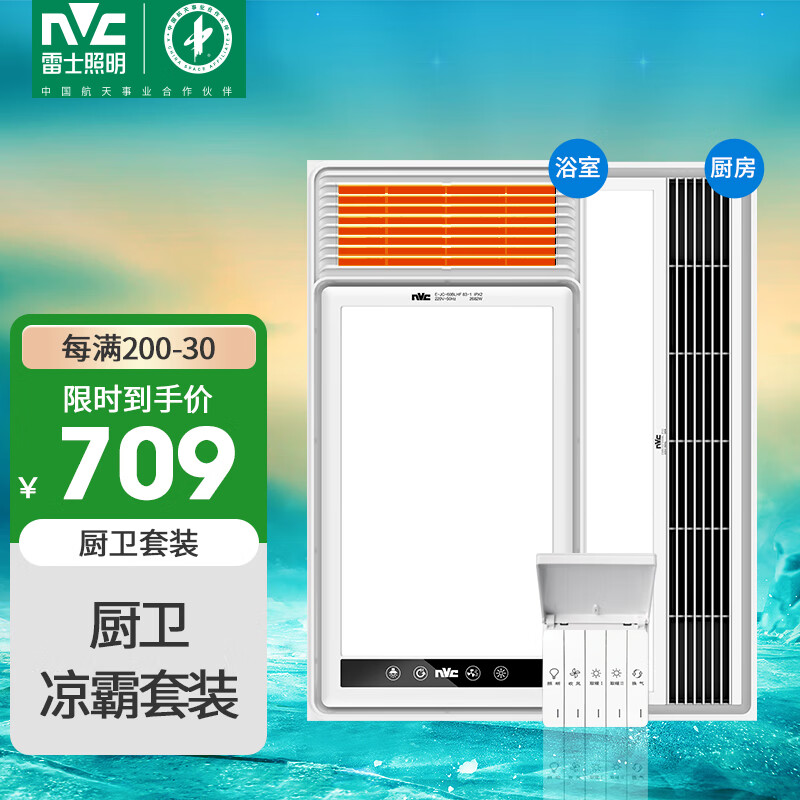 雷士(NVC)双电机大功率取暖器风暖浴霸排气照明一体浴室暖风机+凉霸套餐A价格:799.00元!