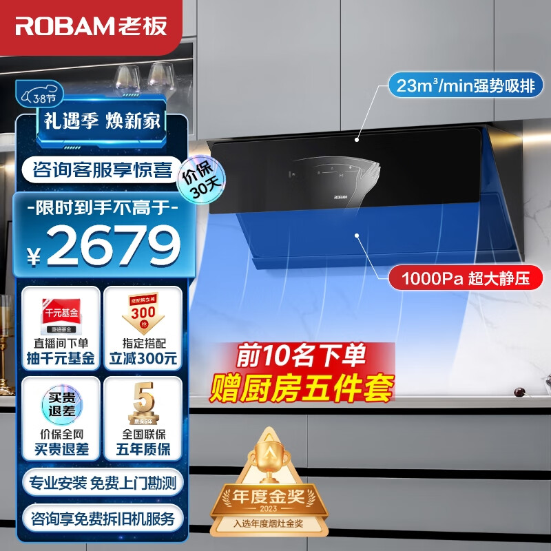 老板(Robam)抽油烟机侧吸式油烟机家用变频三面拢23大风量挥手智控低噪高静压 以旧换新脱排吸油烟机28D3S价格:2649.00元!