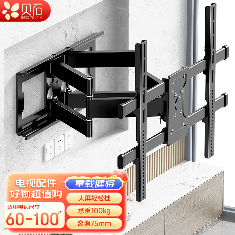 贝石 电视机挂架 电视支架伸缩旋转壁挂架通用小米创维海信TCL康佳华为智慧屏等电视架 60-100英寸丨重载健将丨加倍承重价格:429.00元!