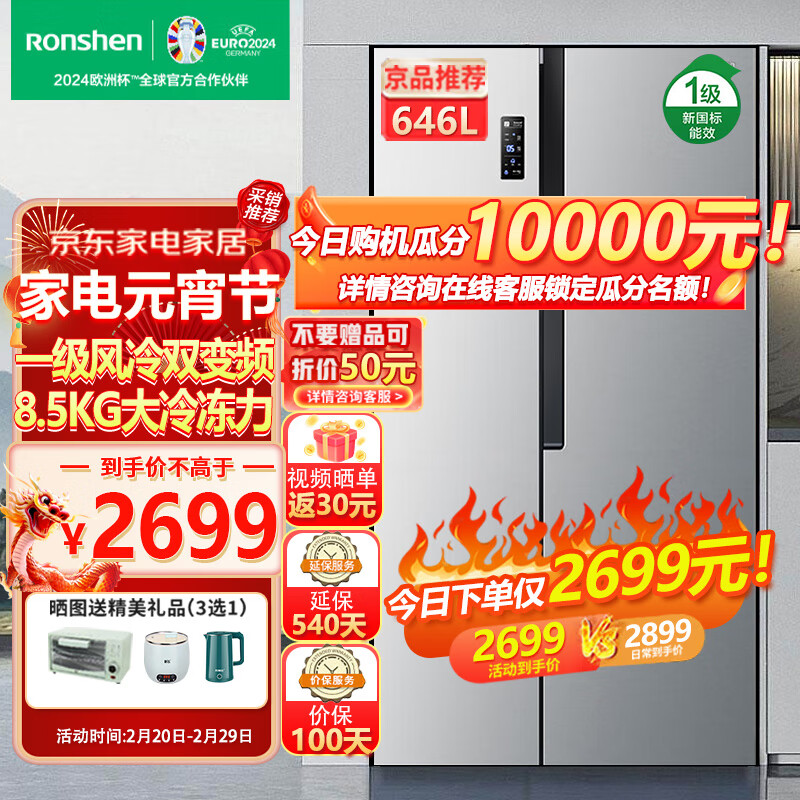 容声(Ronshen)646升对开门冰箱一级双变频风冷无霜智慧精储自然态精致养鲜深冷锁鲜BCD-646WD11HPA价格:2699.00元!