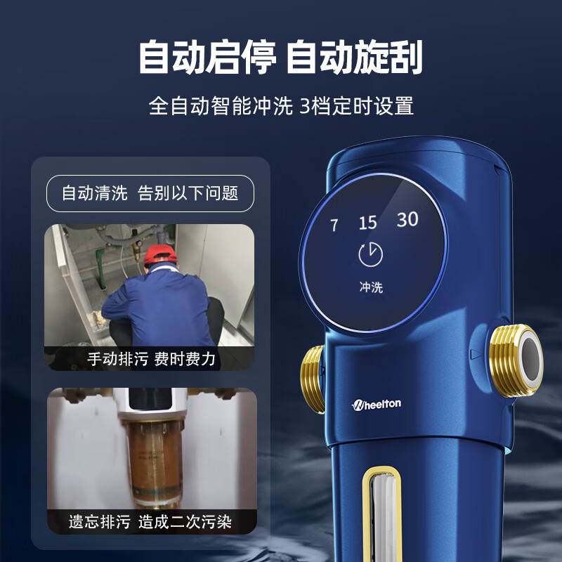 惠尔顿(WHEELTON) 前置过滤器全自动清洗全屋净水器家用反冲洗自来水过滤器P0063 智能自动旋刮清洗 智能自动反冲价格:1099.00元!