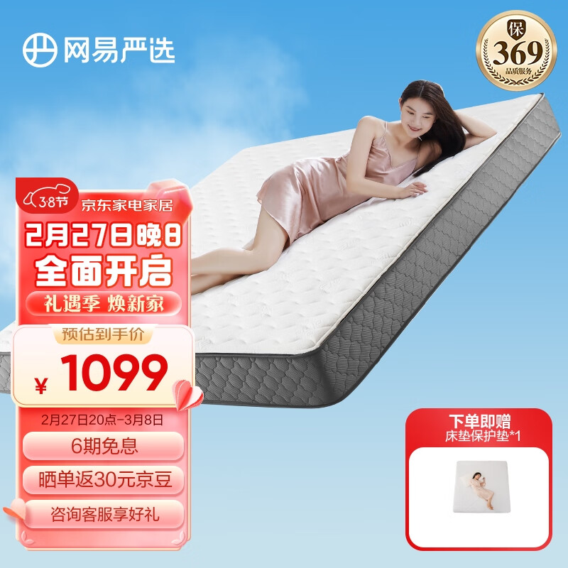 网易严选 弹簧床垫1.8*2米 乳胶床垫 3D椰棕席梦思床垫 乳胶款价格:1199.00元!