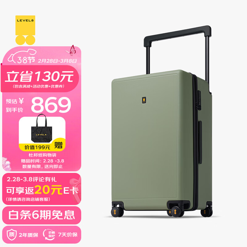 地平线8号(LEVEL8)行李箱 男女密码大容量万向轮26英寸宽拉杆大旅行家PC拉杆箱 绿色价格:999.00元!