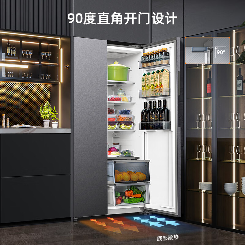 1、这款冰箱真的好大啊,可以容纳好多好多东西,再也不怕东西不够放了,而且颜色方面我们也都挺喜欢的。还有一个是冰箱门可以完全打开,很方便。