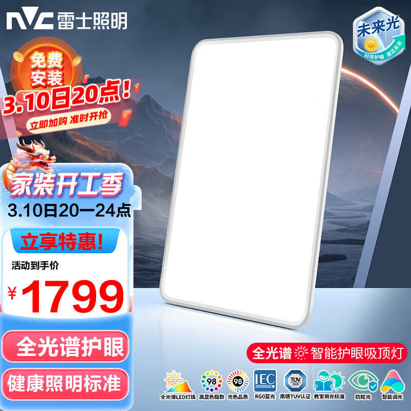 雷士(NVC)LED吸顶灯 现代简约客厅卧室灯具智控Ra98护眼全光谱灯饰未来光F价格:2099.00元!