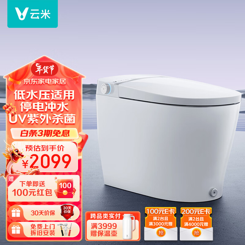 云米(VIOMI)智能马桶一体机即热式虹吸低水压智能坐便器Nano2E 300坑距价格:2099.00元!
