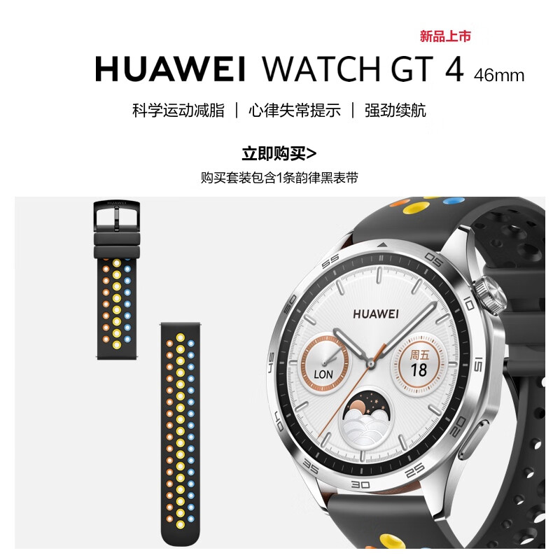 【活力三环腕带套装】华为WATCH GT 4 46mm 山茶棕 棕色真皮表带 韵律黑表带套装价格:2068.00元!