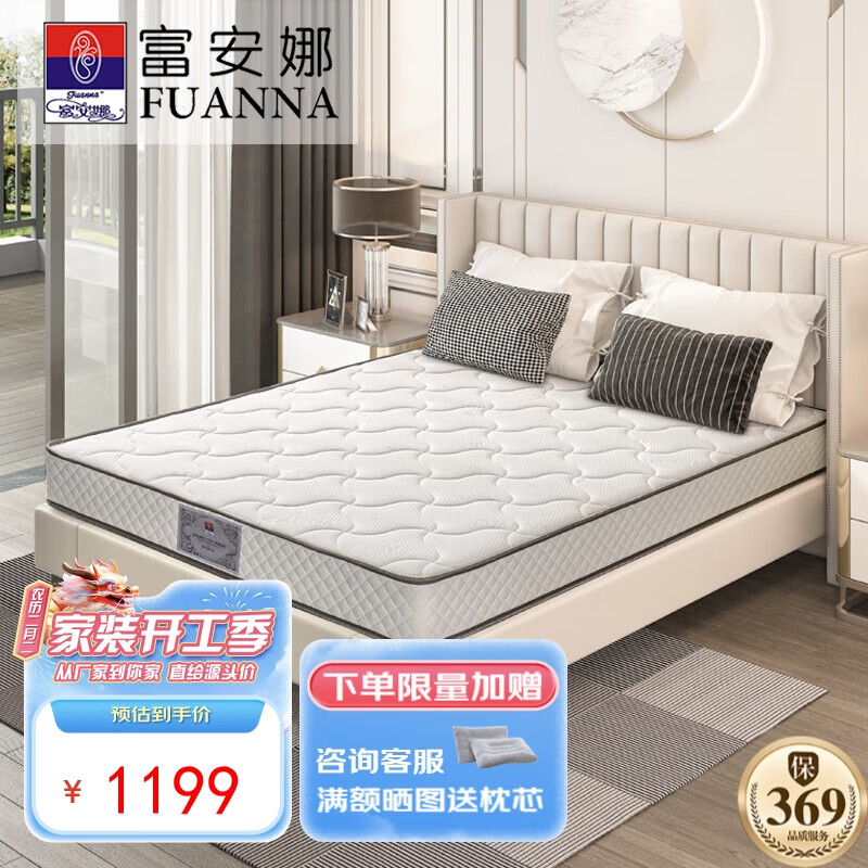 富安娜床垫 偏硬护脊椰棕床垫 席梦思防螨面料邦尼尔弹簧床垫子 1.5*2米价格:1379.00元!