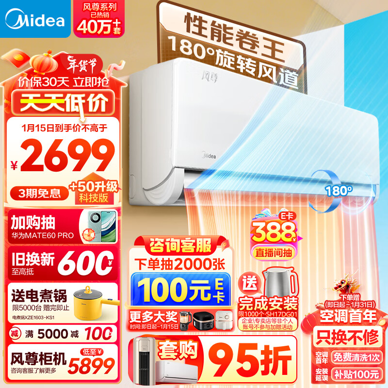美的(Midea)大1匹 风尊 时尚版 新一级能效 变频冷暖 壁挂式空调挂机 京东小家智能家电 KFR-26GW/N8MXC1价格:2699.00元!