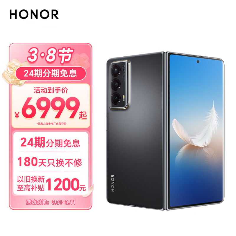 荣耀Magic Vs2 超轻薄机身 零风险调光护眼双屏 5000mAh超长续航 5G 折叠屏手机 12GB+256GB 绒黑色价格:6999.00元!