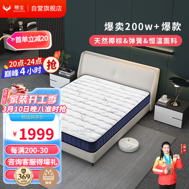 穗宝(SYMBOL)床垫3D环保椰棕床垫整网弹簧床垫 恒感5G·芯能1.5米*1.9米价格:2459.00元!