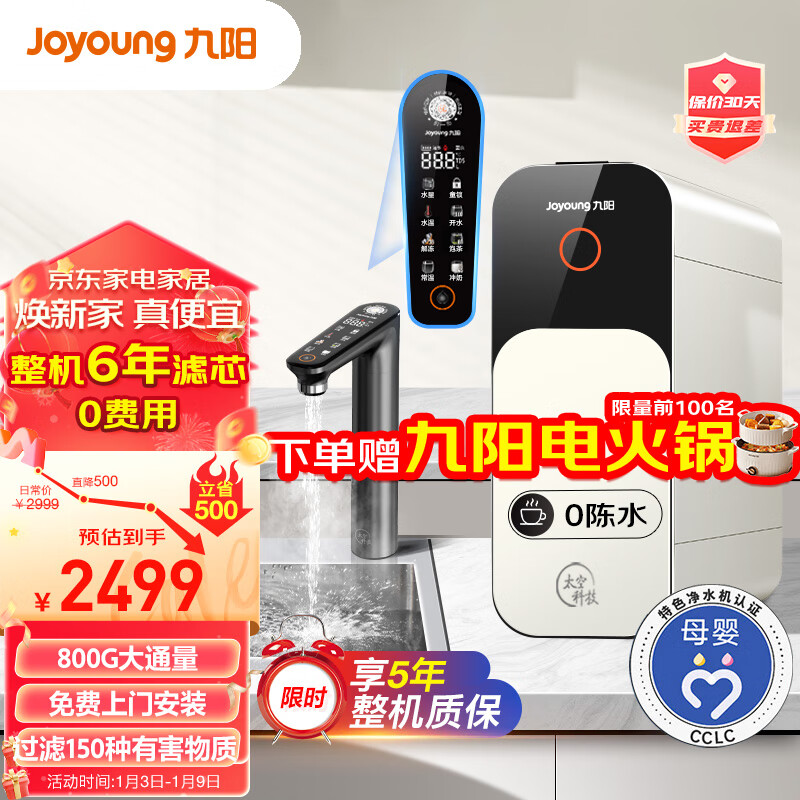 九阳(Joyoung)热小净 800G 加热净水器2.05L/min大流速即热净水机TDS双数显厨下式家用RO反渗透过滤器直饮机R1价格:2499.00元!