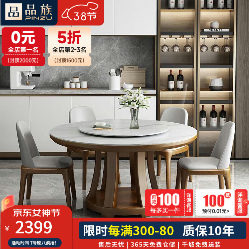 品族岩板餐桌椅组合家用小户型实木圆桌饭桌带转盘桌CZ-004 1.2+4a价格:3199.00元!
