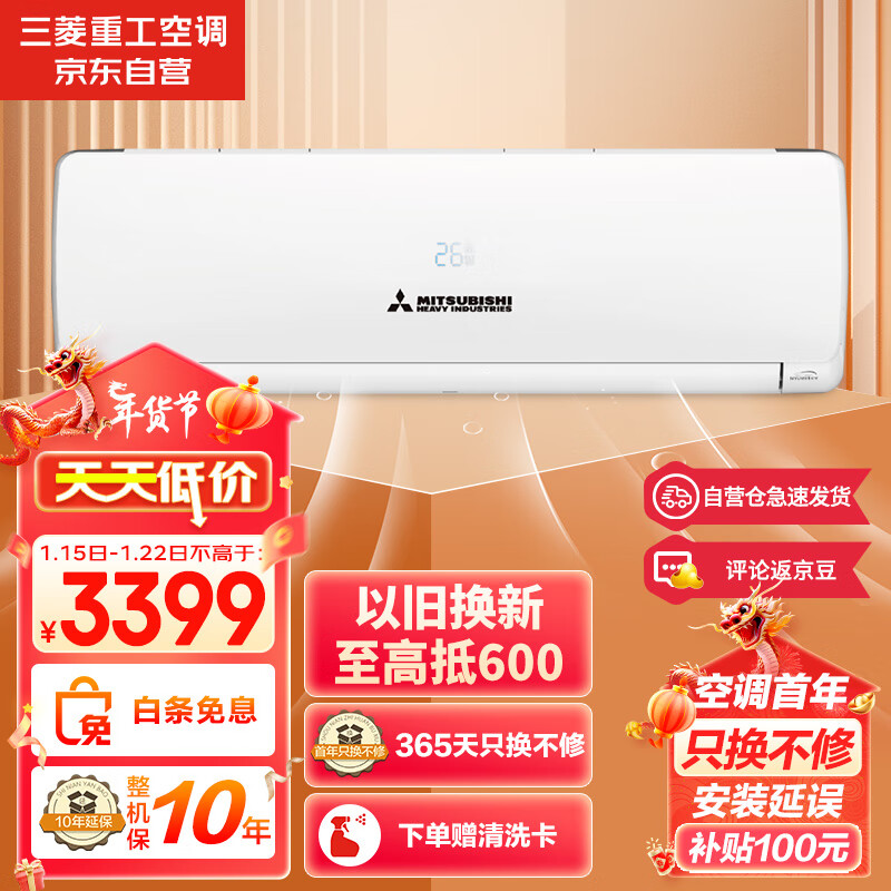 三菱重工适用14-22㎡ 新三级能效1.5匹 变频冷暖 空调挂机 智能电辅热远程送风三菱空调SRKQG35以旧换新价格:3399.00元!