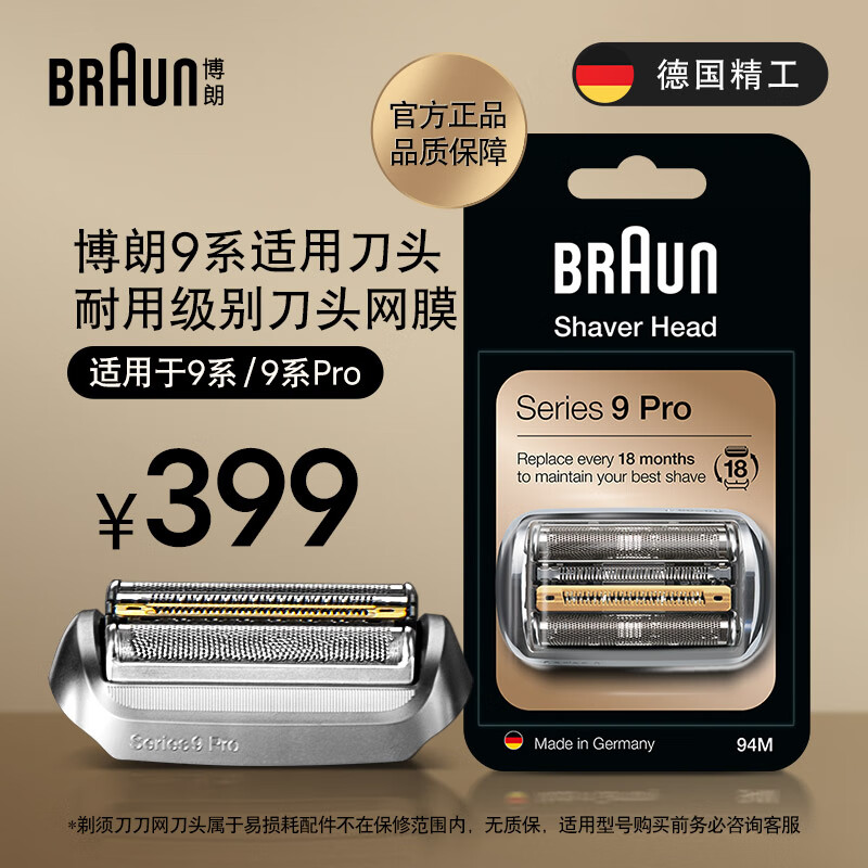 博朗(BRAUN)尊享9系Pro刀头网膜电动剃须刀94M刀头网膜组合价格:399.00元!