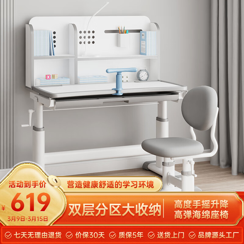 尊眠(ZUNMIAN)儿童书桌学习桌椅套装小户型学生家用可升降 智远旗舰款 灰白色价格:739.00元!