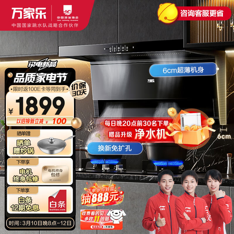 万家乐顶侧双吸油烟机 23立方抽油烟机烟灶套装自清洗换新免扩孔小尺寸高温防烫灶具套装TAK5+AY4C天然气价格:2099.00元!