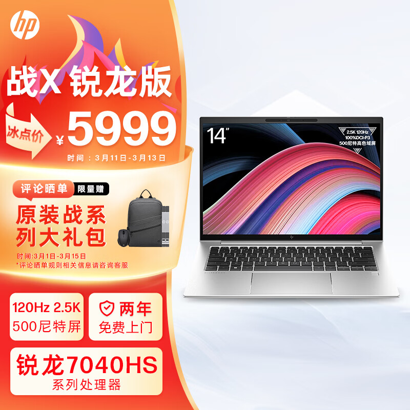 惠普(HP)战X Zen4锐龙 14英寸轻薄笔记本电脑(R7-PRO 7840HS 32G 1T 2.5K 500尼特屏 2年上门 AI 高性能)价格:5999.00元!