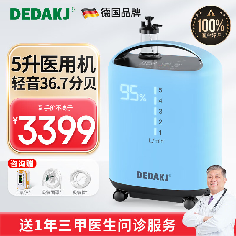 DEDAKJ 德国5L升医用制氧机家用吸氧机氧气机带雾化家庭老人配呼吸机一体机德迩杰Q5W价格:5099.00元!