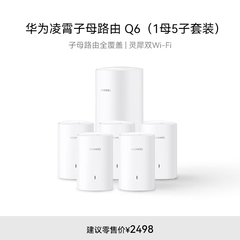 华为凌霄子母路由 Q6(1母5子套装)AX3000Mbps 千兆路由器 全屋WiFi 6+ 电力线版 无线穿墙王 电力猫价格:2498.00元!