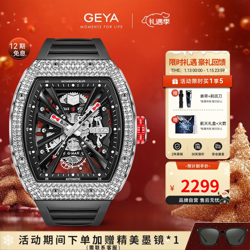 格雅(GEYA)手表男全自动镂空镶钻酒桶型机械男士国表新年礼物78071价格:2769.00元!