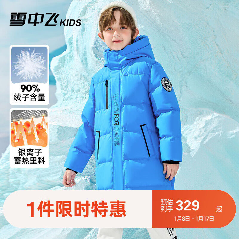 雪中飞【蓄热】童装儿童羽绒服男童女童纯色中大童拼接羽绒服浅蓝110cm价格:729.00元!