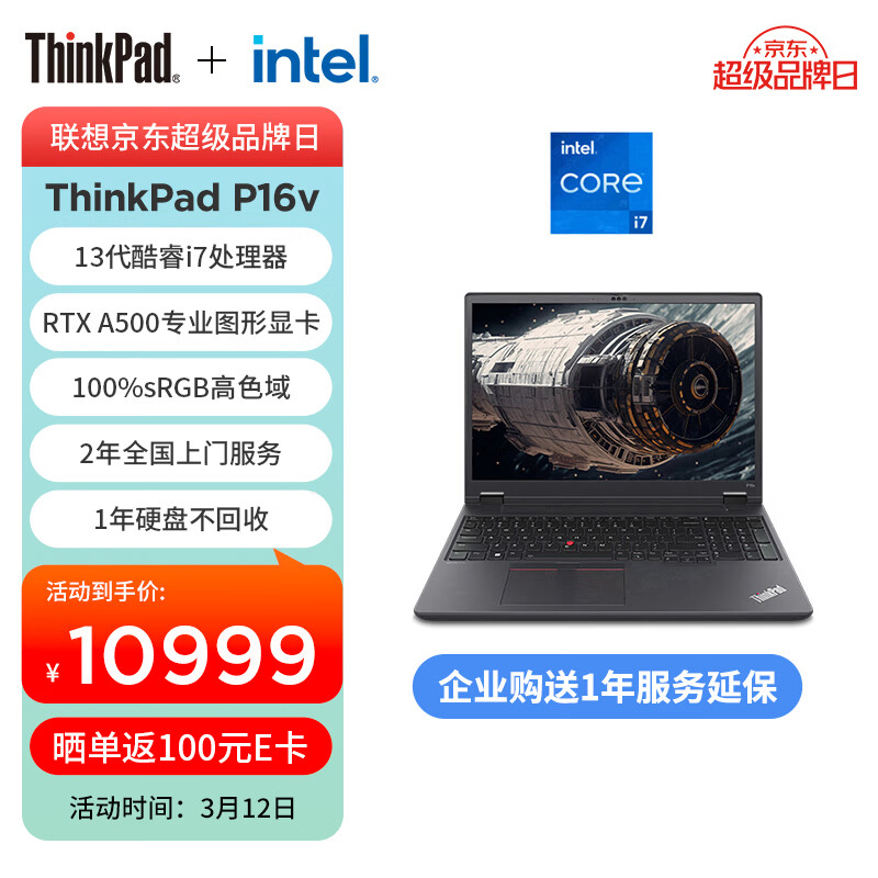 ThinkPad P16v 联想16英寸高性能设计师工作站 13代酷睿i7-13700H 32G 512G RTXA500 商务办公本价格:10999.00元!