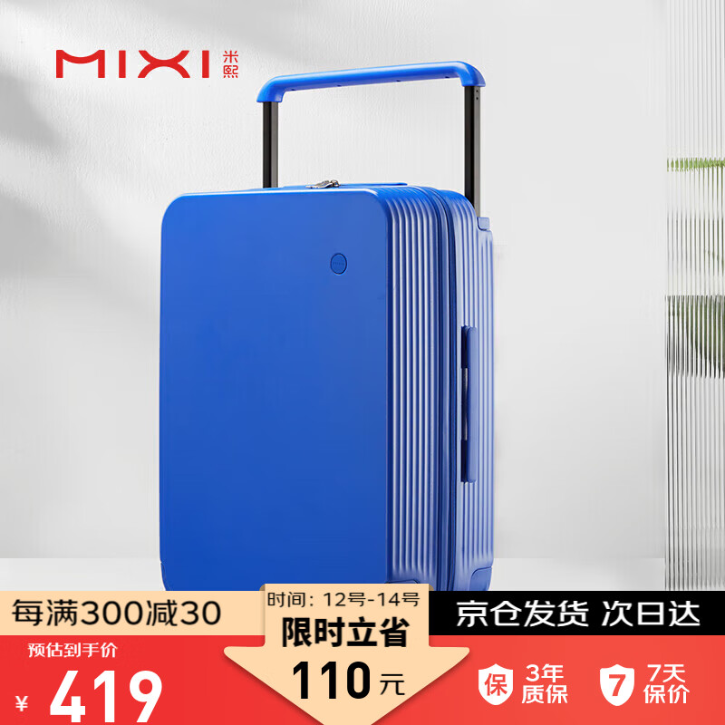 米熙高颜值宽拉杆箱子24英寸行李箱大容量旅行箱子女密码箱男克莱茵蓝价格:529.00元!