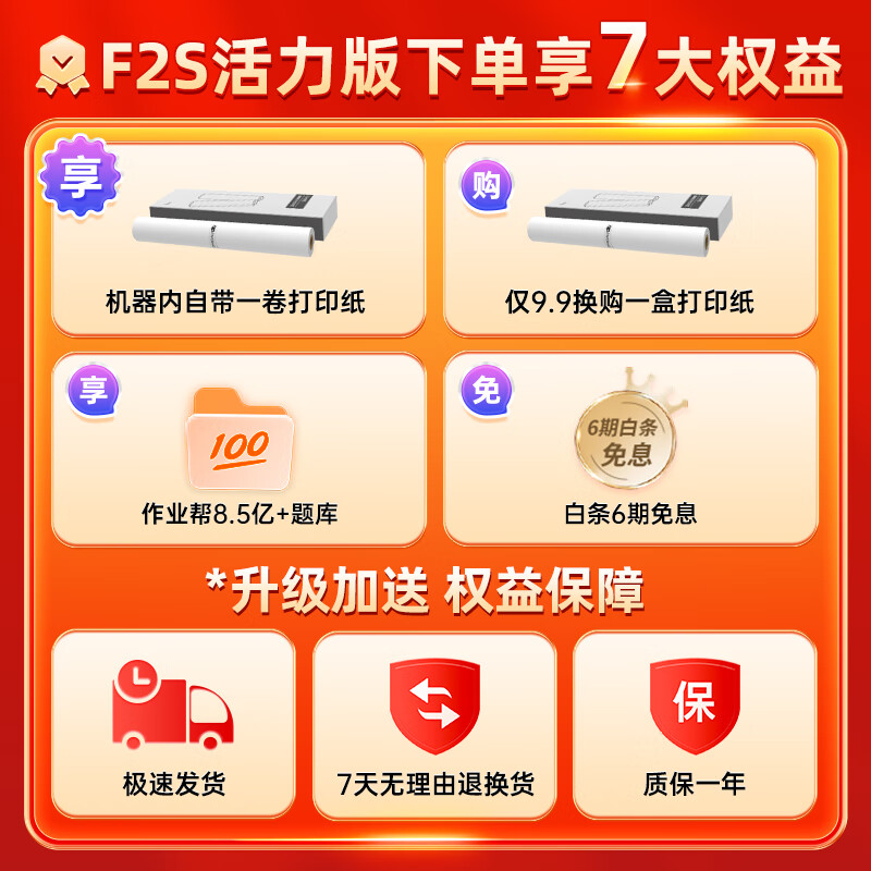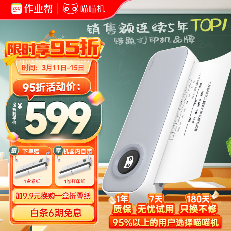 喵喵机A4高清错题学习打印机作业帮家用错题整理神器无墨打印小型便携桌面热敏打印机 F2S活力版价格:599.00元!