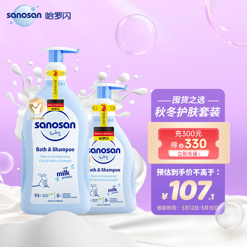 哈罗闪(sanosan)婴儿儿童洗发水沐浴露二合一套装(二合一400ml+二合一200ml)价格:89.00元!