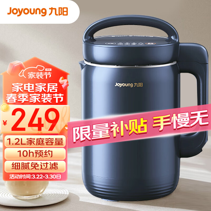 九阳(Joyoung)豆浆机破壁免滤1.2L大容量无网细腻研磨多功能料理机DJ12E-N620SG价格:249.00元!