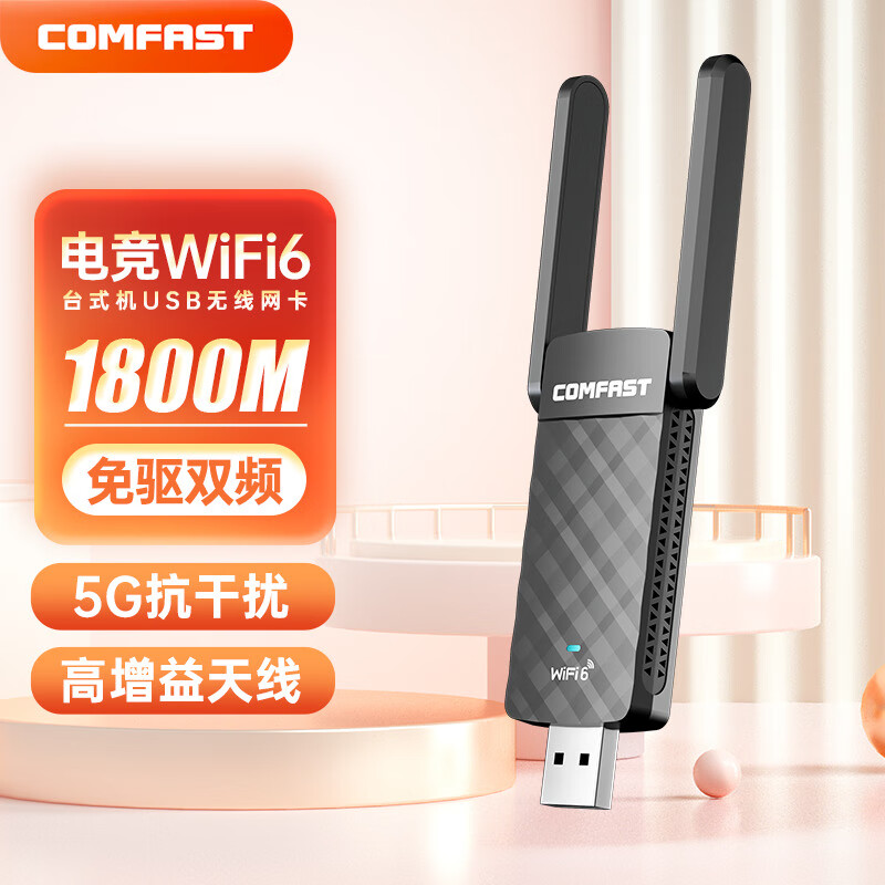 COMFAST CF-952AX 千兆1800M双频5G外置USB无线网卡台式机电脑主机WIFI6接收器笔记本信号穿墙价格:109.00元!