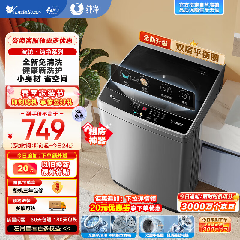 小天鹅(LittleSwan)波轮洗衣机全自动 6.5公斤 健康免清洗 品质电机 宿舍 租房神器 小型迷你 双层平衡圈 TB65V668E价格:749.00元!