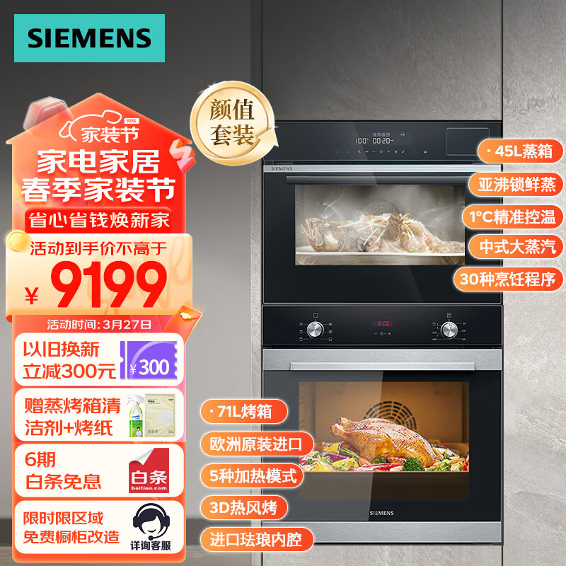 西门子(SIEMENS)蒸烤箱套装 欧洲原装进口烤箱+国产嵌入式蒸箱 自清洁CD289+HB313 烤59.5CM蒸45.5CM高价格:9199.00元!