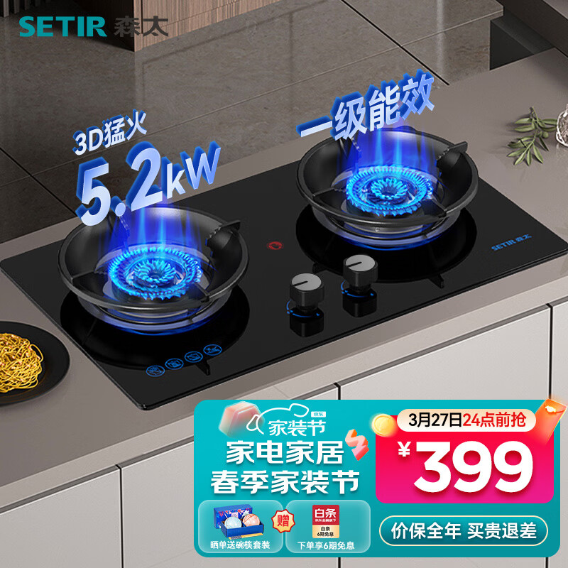 森太(SETIR) 燃气灶煤气灶双灶具天然气灶液化气灶嵌入式猛火灶煤气炉猛火灶 【5.2kW天然气】聚能蓝焰灶价格:499.00元!