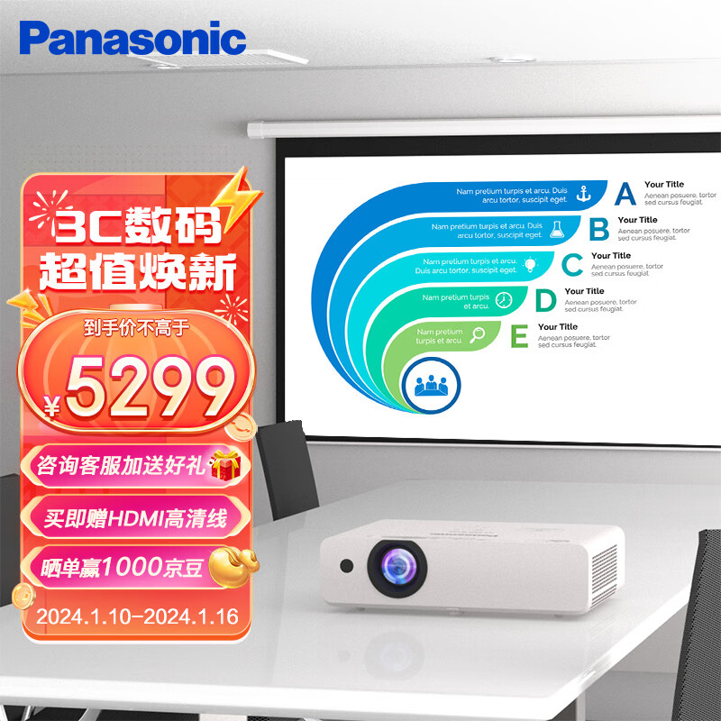 松下(Panasonic)PT-WX4201 投影仪办公室会议专用 白天商用投影机家庭影院(4300流明 高亮大屏 白天直投)价格:6099.00元!