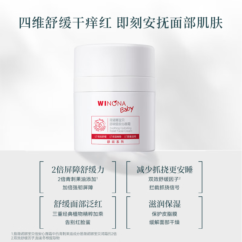 薇诺娜宝贝舒润倍安心面霜50g配置参数: