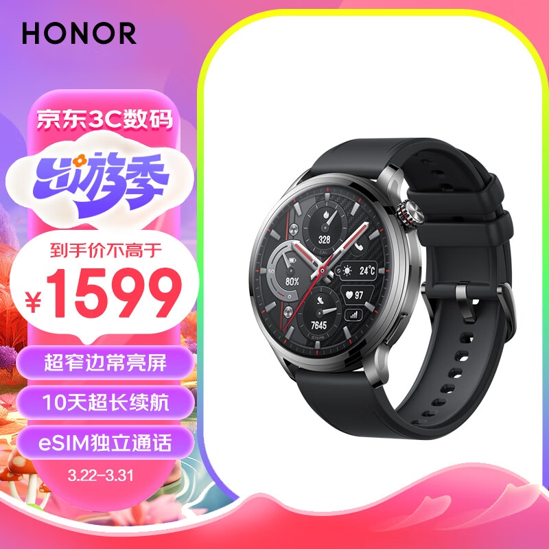 荣耀手表4Pro 黑色 超窄边常亮屏 10天eSIM超长续航 心率血氧监测智能手表 飞驰竞技 龙年表盘新年礼物价格:1599.00元!